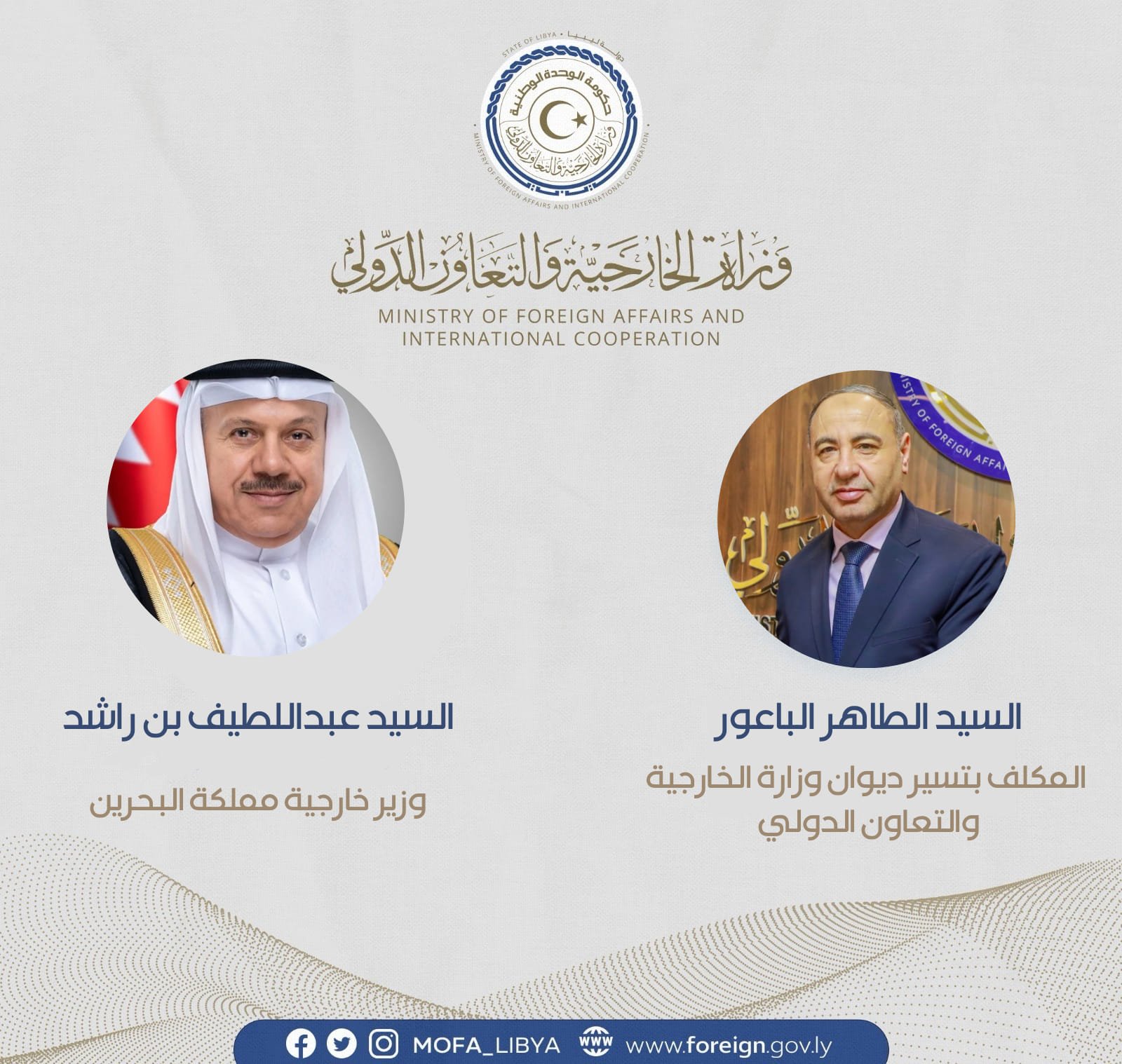 المكلف بالتعاون الدولي بحكومة الوحدة الوطنية الباعور يبحث مع وزير خارجية البحرين القضايا ذات الاهتمام المشترك